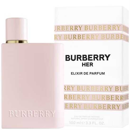 Burberry Her ailesinin en son yoğun üyesi olan Kadınlara özel Her İksir Parfümü, tamamı vanilya ve amberin şehvetli ve bağımlılık yaratan karışımıyla sarılmış, kırmızı meyveler ve yaseminin cesur bir patlamasıyla ortaya çıkan gurme ve meyveli notaları ortaya çıkarıyor. Burberry Her Elixir de Parfum, Eau de Parfum şişesini, içerdiği parfümün yoğunluğunun yanı sıra kendinden emin ve şehvetli doğasını yansıtan opak bir bitişle daha koyu bir pembe renkte alır.