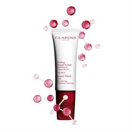 Clarins Beauty Flash Peel ayrıca kullanımı kolay bir formatta kolaylık sağlar, donukluğa, cilt dengesizliklerine ve görünür kırışıklıklara karşı etkili ve gözle görülür şekilde hareket etmek için cildin tüm seviyelerine bakım yapar. Yenilenmeyi artırmak ve parlaklığı ve esnekliği geri kazanmak için cildi eksfoliye eder. Cildinizi evde yenilemenin yeni, hızlı, pratik ve etkili yolu.