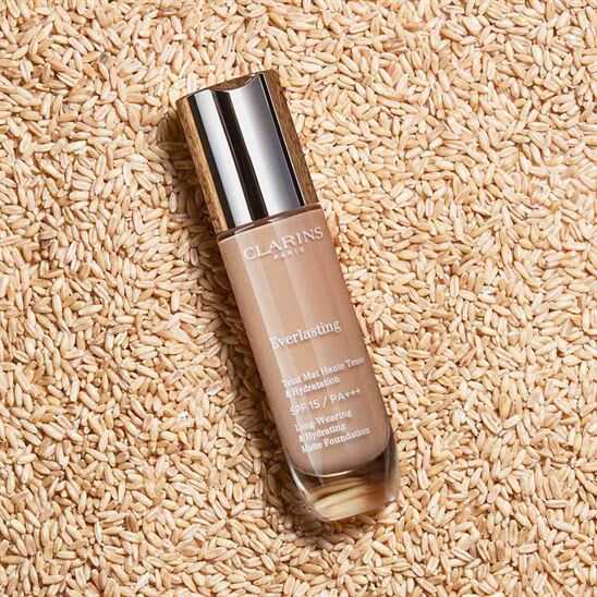 Uzun süre kalıcı mat cilt ve nemlendirme ve 24 saate kadar kusursuz cilt! Yeni Everlasting fondöten ile tanışın! Ultra hafif dokusu cilde mükemmel şekilde yayılır ve benzersiz formülü kusurları ve kızarıklıkları kapatır. Clarins Everlasting fondöten, nemlendirmenin yanı sıra cildin koruyucu bariyerini güçlendirmeye yardımcı olan organik kinoa özü ile zenginleştirilmiştir. Fondötenin dayanıklılığı, renkli pigmentlerin cilde yapışmasını artırma yetenekleriyle bilinen yulaf şekerinin özü ile sağlanır. Formül ayrıca cildi çevre kirliliğinin zararlı etkilerine karşı koruyan Anti-Kirlilik kompleksini de içerir.