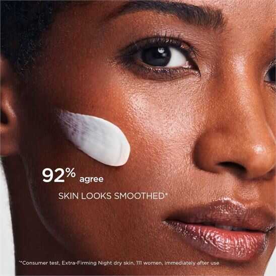 Ürün Kullanımı : Akşamları yüzünüzü temizledikten ve Clarins Lotionçeşitlerimizden cildinize uygun olanı sürdükten sonra: Clarins Extra Firming Gece Kremi kuru Ciltler için nemlendirici kreminizi az miktarda alıp elinizde ısıtın. Yüzünüze ve boynunuza hafifçe yayın. Cildin sıkılığını ve dolayısıyla yüz hatlarının gençliğini korumak için hafif baskıyla uygulayın. Yönlendirici basınç hareketleri uygulayın: Yanaklara 3 kez, alna 3 kez ve boynun her iki tarafına 3 'er kez.