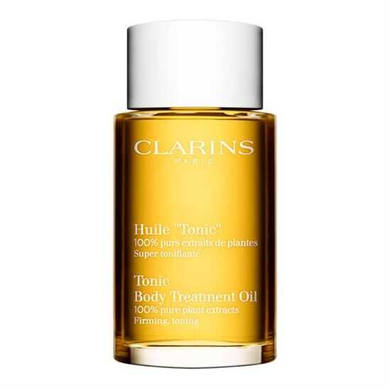 Clarins' in en çok satan Huile Tonic sıkılaştırıcı vücut yağı - Biberiye, Sardunya ve Nane dahil olmak üzere % 100 saf ve güçlü bitki özleri ile sağlıklı bir formül oluşturur - ciltteki elastikiyetin sıkılaşmasına, tonlamasına ve düzelmesine yardımcı olur, çatlakların görünümünü yumuşatır.