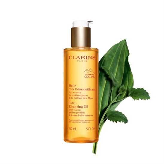 Clarins Total Cleansing Oil , Arındırıcı Alp bitkileri ve% 47 Organik Ayçiçek yağı ile formüle edilmiş ferahlatıcı, kolay durulanabilen hafif temizleme yağı, suyla aktive olur ve cildin mikrobiyotasını koruyarak ağır, uzun süre kalıcı ve suya dayanıklı makyajı ve kirleticileri bile anında çözen ipeksi bir süt haline gelir. yumuşak, temiz ve rahat bir cilt hissi. İki organik Alp bitkisi özünün ikilisi - Clarins'in Gentle Complex (organik sarı centiyana ve organik limon balsamı) ile zenginleştirilmiş bu ipeksi yağ, cilt mikrobiyotasına saygı gösterirken su geçirmez makyajı bile temizler.