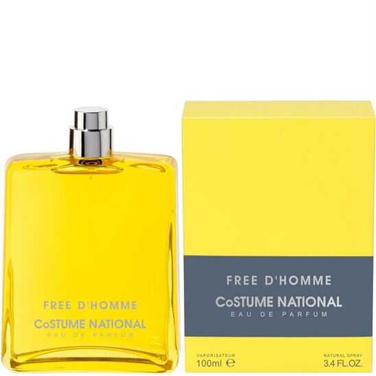 Alışılmışın dışında ve saygısız Free d'Homme, modern özgür adamın özüdür. Rüyalardan gelen ve şiddetli bir şekilde zihin çölüne giren vahşi bir at gibi koşma arzusu. Kaçma, ruhun el değmemiş ovalarında rahat bir şekilde yaşama arzusu ortaya çıkıyor: rahat. Artık değişimden korkmuyor, dahil olmak ve cesaret etmek istiyor. Aynı zamanda hem gösterişli hem de sert olan CoSTUME NATIONAL adamı, geleceğine parlak bir pozitiflikle bakmak için büyük bir enerjiyle çılgınca hareket ediyor. Ennio Capasa tarafından tasarlanan ikonik şişe, erkek figürünün hatlarını mutlak zarafetle minimalizmle çiziyor. Cam, yeniden doğuşun enerjisini ve parlaklığını tanımlayan şeffaf, koyu safran sarısıyla renklendirilmiştir. Gümüş ısı damgalı bir logo ile süslenmiştir.