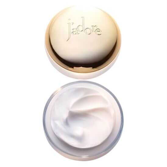 J'adore'un taze ve çiçeksi koku notalarıyla cömertçe donatılmış bu krem, cildin yumuşak ve rahat hissetmesini sağlayan kadifemsi bir doku ortaya çıkarır. %92* doğal kökenli içeriklerle formüle edilen bu parfüm vücut kremi cildi sararak nemlendirir. Göz alıcı beyaz tonu, J'adore cam boncuğundan esinlenilen bir cam kavanozda sergileniyor.