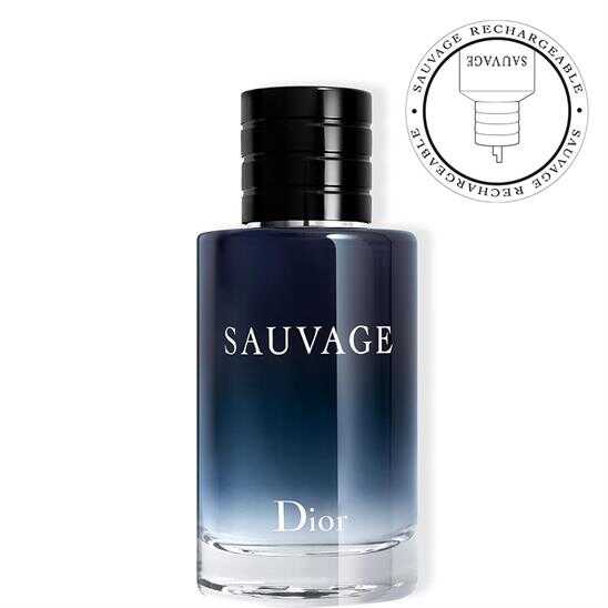 ŞARJLANABİLİR' olarak işaretlenmiş 100 ml Sauvage eau de toilette şişeleri, Sauvage Refill ile yeniden doldurulabilir.