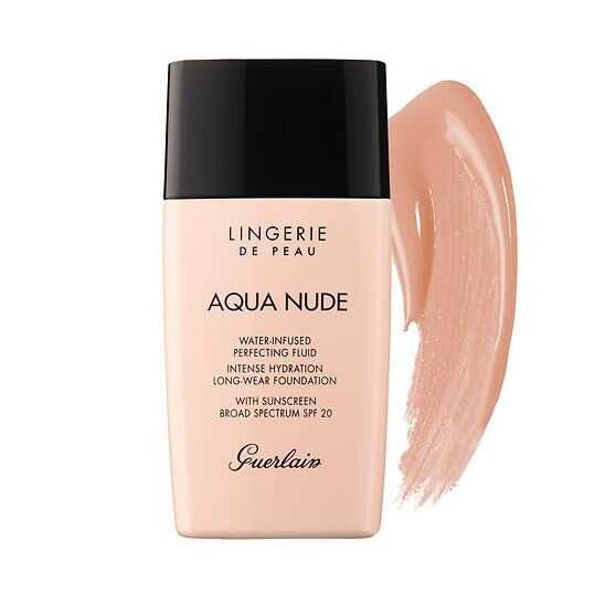 Guerlain, daha hafif bir dokuya, uzun süre kalıcılığa ve yoğun nemlendirmeye sahip, doğal olarak daha güzel bir cilt için ikinci cilt makyajında devrim yaratan Lingerie de Peau Aqua Nude fondötenini sunuyor. İnanılmaz derecede hafif yapısı, cildin dokusunu pürüzsüzleştirir ve mükemmelleştirir, uçucu bir bitiş sağlar. Bakım suyu ile zenginleştirilmiş formülü, cildi yoğun bir şekilde nemlendirerek sonsuz bir rahatlık hissi ve gün geçtikçe gözle görülür şekilde sıkılaşmış bir görünüm kazandırır. SPF 20.