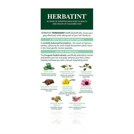 Kokusuz ve tutarlı bitkisel formülü sayesinde Herbatint Saç Boyaları her boyama için 40 dakikada mükemmel sonuçlar verir. Diğer Herbatint saç boyalarıyla kobine edilerek modaya eşlik eden, sıradışı ve özel renkler elde edebilirsiniz.