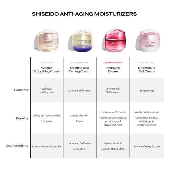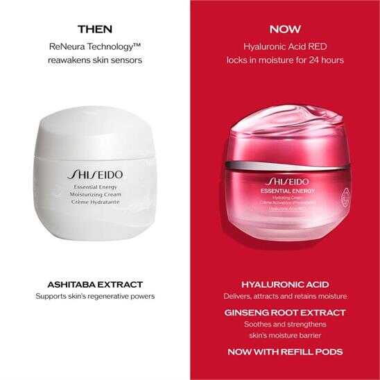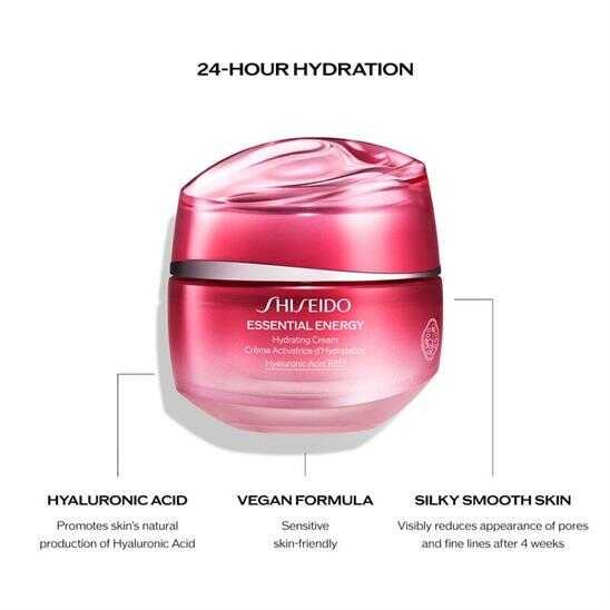 Bu hafif dokulu nemlendirici, cildinizde iyi bir nemlendirme sağlamak için hızla emilir ve cildinize aydınlık bir görünüm kazandırır. Daha yoğun ve 3 kat daha uzun süreli nemlendirme* için SHISEIDO'nun kendine ait Hyaluronic Acid RED teknolojisi ile cildinizi yoğun bir şekilde nemlendirir ve ince çizgilerin oluşmasını önlemeye yardımcı olur*. 2 haftada daha az görünür ince çizgiler için Ginseng RED ile güçlendirilmiştir** Enerji dolu bir cilt ve sağlıklı, canlı bir görünüm ortaya çıkarmak için temel nemlendirme sağlar. Sonuçlar: -Cilt anında %93** daha nemli hisseder -1 haftada cilt %85** daha yumuşak ve esnek olur -2 haftada ince çizgi görünümü %74** daha az olur -4 haftada cilt %86**daha sağlıklı ve canlı görünüme kavuşur