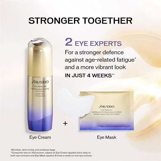 Shiseido Vital Perfection Canlandırıcı ve Sıkılaştırıcı Hızlı Göz Maskesi, Sadece 1 uygulamada daha sıkı, canlı ve toparlanmış bir göz çevresi sağlar.